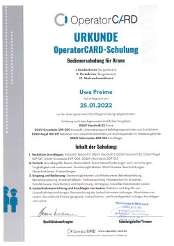 Zertifikat Bedienerschulung Anschläger, Uwe Preime, 20.05.22